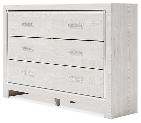 The epitome of fashion-forward design, this dresser with mirror set is a beautiful blend of comfort and luxury. Shiny chrome-tone accents, a pearlized finish and mosiac pulls bring a glam touch to the richly rustic appearance. Six smooth-gliding drawers provide plenty of storage space for your wardrobe needs.