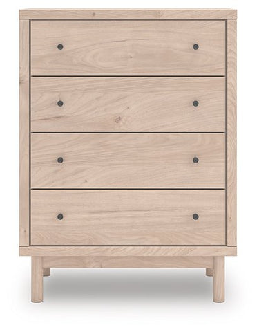 Looking for a chest of drawers that's both playful and practical for your little one? This piece is just the ticket. Its charming design and light wood finish create a whimsical and inviting atmosphere. Four smooth-gliding drawers provide plenty of storage, so there's no excuse for a messy room.