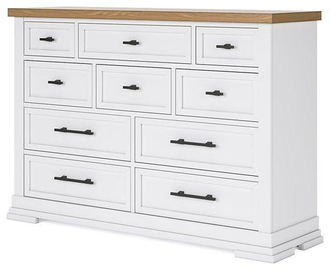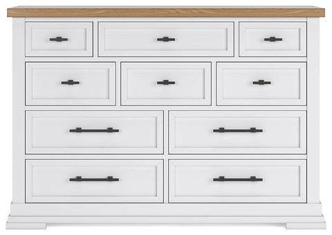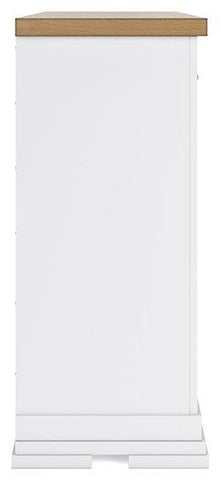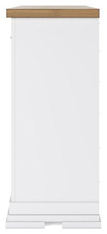 - Dresser with 2-tone finish (white finish; butcher block oak veneer with natural finish)