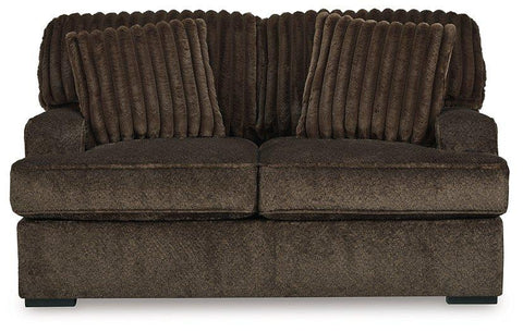 If you’re looking for a blend of extraordinary comfort and contemporary style, this seating package stacks up beautifully. It's a modern yet soft look—made all the more appealing by plush, cozy cushions that feel as great as they look. The rich chocolate color is simply smart and practical. And pretty sweet.