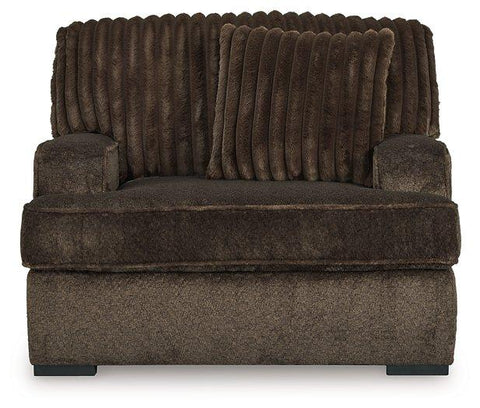 If you’re looking for a blend of extraordinary comfort and contemporary style, the extra-roomy Aylesworth oversized chair stacks up beautifully. It’s a modern yet ultra-soft look pairing plush textured and on-trend corduroy cushions that feel as great as they look. The rich chocolate color is simply smart and practical. And pretty sweet.