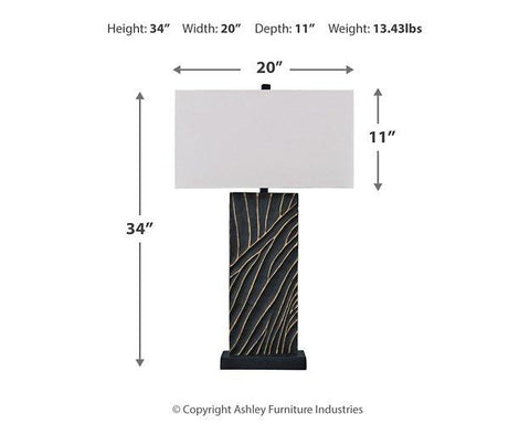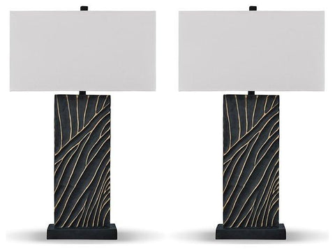 Kick your style up a notch with this table lamp set. The impressive black bases boast textured detail enhanced with striking gold accents for sophisticated flair. Its eye-catching form exudes an urbane yet casual vibe, making it an easy addition to existing decor.