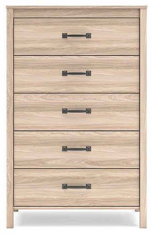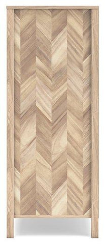 Transform your bedroom into an instant sanctuary. Pairing the look of oak grain with a unique chevron pattern, this chest of drawers introduces a touch of mid-century modern style that's sure to elevate your space. Catering to your busy lifestyle, this chest is ready to assemble in the comfort of your home.