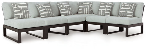 Sleek, contemporary style meets outdoor living in this sectional. Its clean-lined black aluminum frame and resin wicker back expertly balance good looks and longevity. The enhanced UV resistance of Nuvella+™ fabric keeps the cushions light and bright, weathering the seasons beautifully. And the modular design allows you to switch up the layout when it’s time for a refresh. With this sectional on the back porch or poolside, you can confidently curate a luxe vibe.