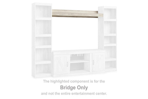 Express your farmhouse style with this entertainment center. Its wispy white finish over replicated oak wood grain is a delightful change from the ordinary. Clean-lined, classic styling with barn door inspiration provides a country chic aesthetic that’s a breath of fresh air. Its combination of cabinet storage and open display space with LED lighting makes for just the right mix. What really turns up the heat: an electric infrared fireplace insert with faux firebrick surround that operates with or without infrared heat and includes a multi flame feature, 7-level temperature setting, five brightness levels and LED glowing embers effect.