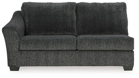 Bring fashionable function to the forefront with this sleeper sectional with chaise. A transitional arm design adds flair to the frame, incorporating subtle visual interest into the otherwise clean-lined silhouette. Dress it up or down. In a richly versatile neutral, this sectional appeals to a variety of style personalities. An included pull-out mattress easily accommodates overnight guests.