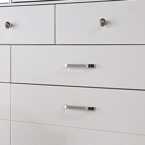 Get the most out of your bedroom with this contemporary style bedroom set. The button tufted leatherette headboard offers unlimited comfort so you can lean into it in any angle. The LED light trim on the headboard adds a tasteful sense of convenience for your nightly reading materials. The decorative mirror accents and ornate bun feet compliment these stylish features and the felt-lined top drawers blend traditional elements well.