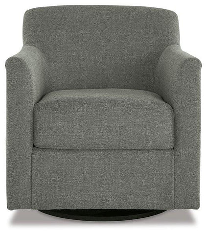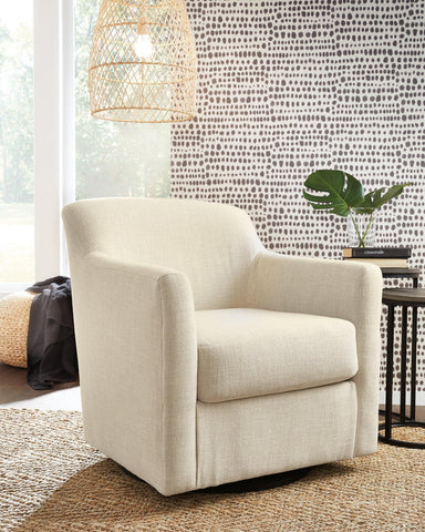 Down with uptown style. This swivel accent chair goes to town with a high-design aesthetic that's temptingly affordable. An ideal way to enhance your lounge space, this chair with a 360-degree swivel base brings casually chic style full circle.
