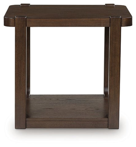 If casual contemporary style is your thing, then you'll love this end table. A wood-tone finish with a rich, dark grain contrast lends a soothing sensibility, while the unique open shelf design and spacious storage drawer add function to great form. Sleek and stylish, this piece is a fresh take on cool for the modern home.