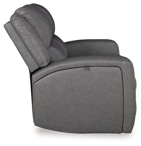 This reclining loveseat appeals to your love for feature-filled furniture, all while maintaining a clean-lined and contemporary design. Pop-out storage and cup holders keep essentials close when you need them and tuck away easily when you don’t. Time to recline? A subtly placed handle extends the footrest with a simple pull. The sleekest of seating options, this loveseat expertly balances form and function.