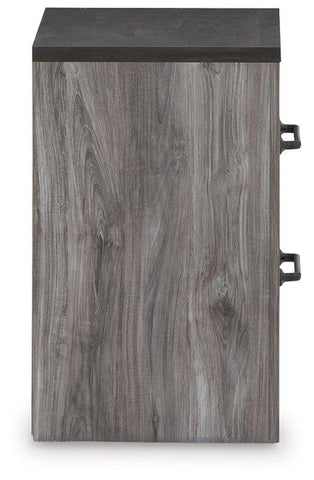 Alluring smoky gray hues create an ambiance that just feels right. This nightstand has a charming wood-like appeal enriched by a two-tone, textured look. Light neutral shades contrasted by a dark charcoal finish bring a refined yet relaxed feel to contemporary decor and a sense of serenity to your space.