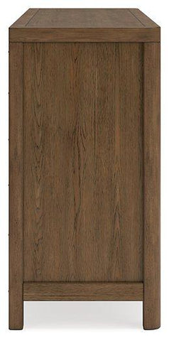 This dresser sits comfortably at the intersection of modern lodge and farmhouse aesthetics. Your warm and welcoming disposition is reflected in the charming architectural elements and light brown glazed finish. Even with its poise, the dresser remains practical. Smooth-gliding drawers tuck away necessities, defining your bedroom with reliable function and style.