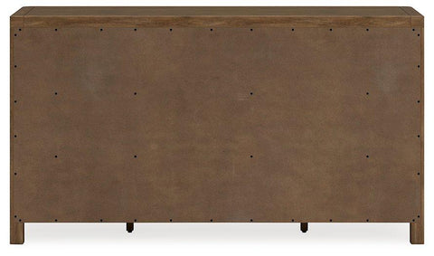 This dresser with mirror sits comfortably at the intersection of modern lodge and farmhouse aesthetics. Your warm and welcoming disposition is reflected in the charming architectural elements and light brown glazed finish. Even with its poise, the piece remains practical. Smooth-gliding drawers tuck away necessities, defining your bedroom with reliable function and style.