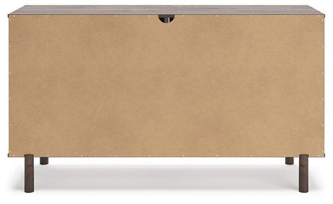 At the intersection of industrial cool and chic sophistication, you’ll find this dresser. With a rich brown finish over replicated walnut wood grain, paired with burnished goldtone handles, it offers an authentic touch that plays well any way you style it. Simple and elegant in its design, this piece keeps your home decor grounded while elevating your modern style.