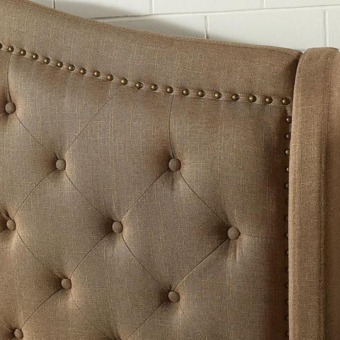 Upgrade your bedroom with some contemporary elements! The warm gray tones of the bed will set the mood for relaxation so that, after a hard day's work, you will not be able to resist! The button tufted headboard with padded linen and nailhead trim works perfectly together to liven up any modern day home.
