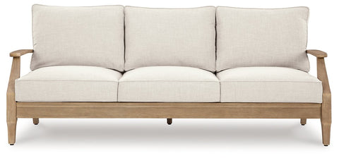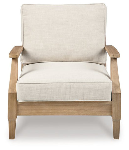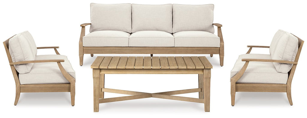 This outdoor seating package effortlessly pairs natural beauty with must-have durability. Its eucalyptus wood construction withstands the elements while making a high-style impression. And you can relax on the porch or poolside without the stress of added upkeep—this set's UV-resistant performance fabric is a breeze to clean.