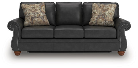 Everyone can have the best rest in the house with this queen sofa sleeper. Its nailhead trim puts the finishing touches on the traditional roll arms you love. The sofa's comfy, durable cushions—wrapped in a rustic yet sophisticated faux leather—keep you feeling relaxed, while its turned legs show that style and quality flow from top to bottom. A pull-out queen mattress made with quality memory foam comfortably accommodates overnight guests.