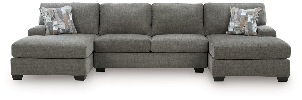 Why choose between classic comfort and modern design? This sleeper sectional with double chaise welcomes day-to-day relaxation in style. Its dimensional, menswear-inspired upholstery brings a designer touch to the easygoing silhouette. A built-in full mattress provides extra sleeping space when needed and seamlessly tucks away when not in use. Gear up for game night or settle in to stream your favorite showāthis sectional is an ideal supporting character for your living room hangs and overnight visits.