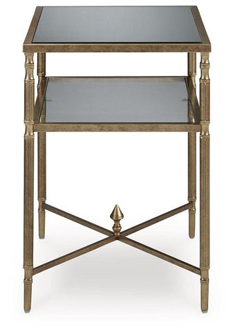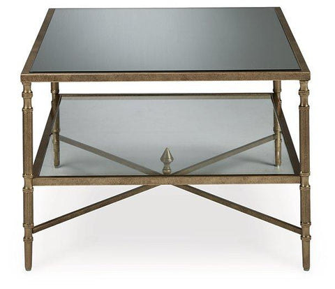 This occasional table package gives traditional design a wonderful sense of relevance. Its details, which include embellished legs and stretchers with a decorative center finial, are timeless classics. The aged goldtone coloration is the essence of relaxed elegance. Underlying shelves add style, substance and functionality.