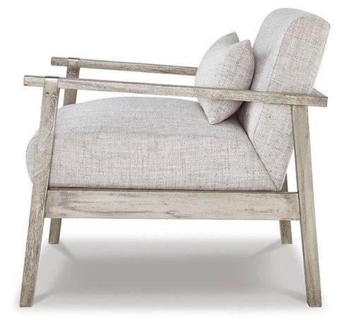 Keep your seating casually cool with this accent chair. The clean-lined design sports a gray finish for a modern appeal, while light neutral upholstery in a herringbone pattern creates textural interest. Antiqued pewter-tone accents add a touch of urban flair, rounding out this relaxed take on contemporary style.