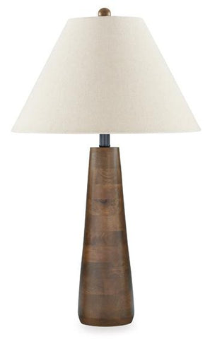Clean, contemporary style can be sleek and shiny—or subtle and earthy. We love how this table lamp falls into the latter category. Pairing a stylish shade with a wood base bathed in a honey brown finish, it has a delightfully different yet simply illuminating look. It's the perfect accent when staged in the living area or entryway.