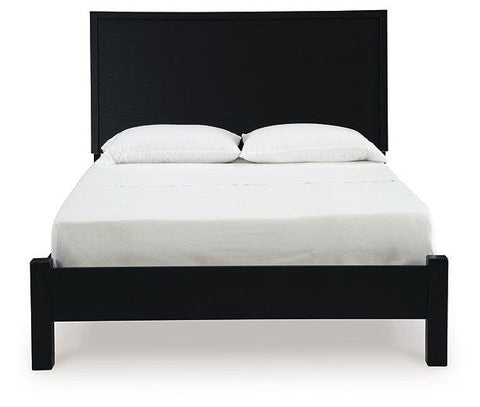 Sophisticated style for the savvy shopper. This panel bed prioritizes affordable, on-trend design. Its subtle replicated texture recalls the natural beauty of wood, highlighting the clean-lined styling. And a matte black finish savvily suits different approaches to modern aesthetics. Mix and match with light and bright hues, or pair with other dark tones for a moody look.