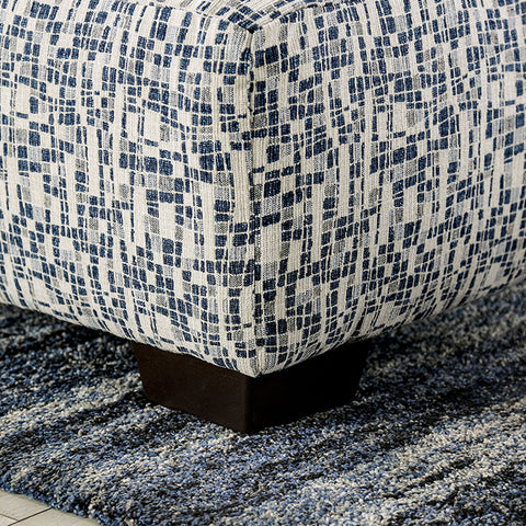 For those looking to balance a minimalist room with a visually hefty piece, this ottoman is the perfect choice. The multi-color chenille is the star of the show--bold yet inviting, the soft fabric uncannily reminds you of intricate tiling along with contrasting navy accents. The oversized stature of the frame helps invoke a sense of immense freedom. It's the kind of furniture that fills in the space it is set on, designed to take any home decor up a notch.