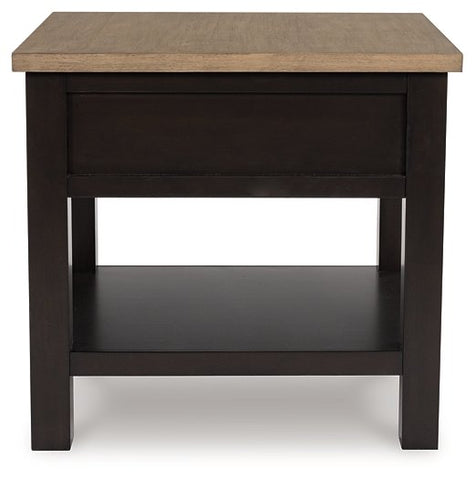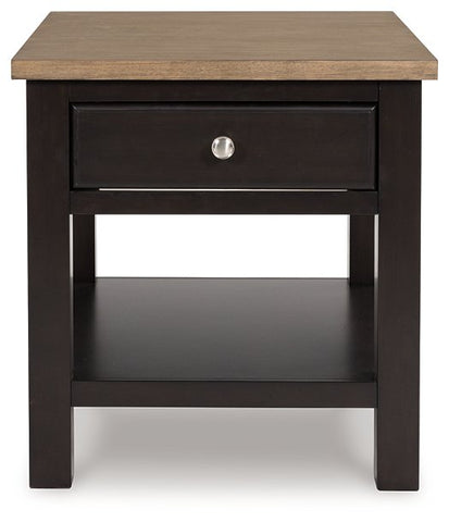 When you’re styling your living room, convenience is key. With this end table, casual flair meets can’t-miss function. Tired of tracking down lost remotes? A handy storage drawer keeps your entertainment essentials close. This fashionably functional piece pairs a dark chocolate brown with a light wood tone, complementing a variety of color palettes.
