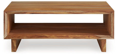 Discover something extraordinary with this clean-lined coffee table. The rich natural beauty of the wood, enhanced with a clear wood-tone finish, brings an organically stunning vibe to your seating area. Strikingly simple lower shelving displays your favorite decor in utterly chic style.