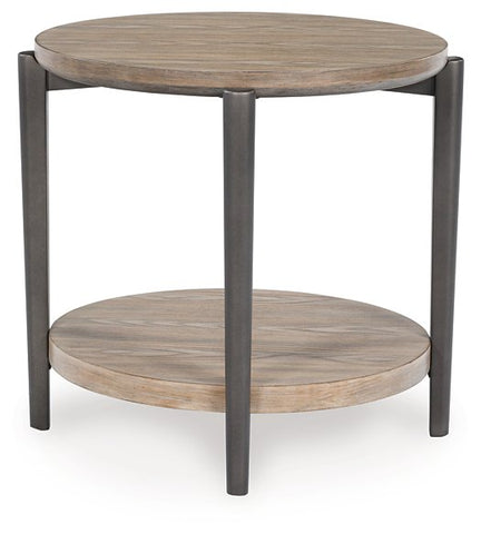 Merging industrial and contemporary elements, this end table turns display space into an art form. The whitish brown wood-tone finish is right on trend, while contrasting painted metallic legs offer a modern touch of stripped-back beauty. With its streamlined design, this table proves that less is more.