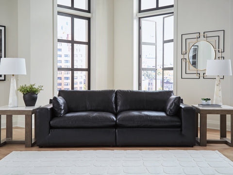 Catering to your contemporary lifestyle, this sectional loveseat is a handsome marriage of masculine and feminine sensibilities. Feather-fiber cushions and bolster pillows soften the look of its chunky, linear silhouette. A warmly hued combination of leather and faux leather upholstery levels up the affordable luxury. And you'll never run out of ways to stage this seating arrangementāeach piece is fully finished on all sides and capable of standing solo. Urban sophistication has never been more versatile.