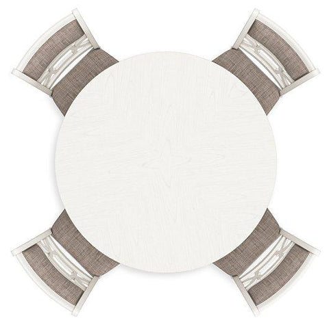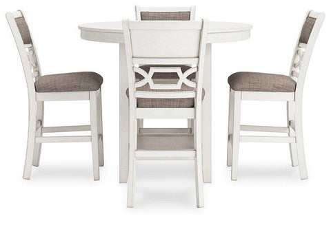 Come together for a delightful dining experience. Chic and relaxed, this counter height dining table and bar stool set effortlessly captivates with its elegant simplicity. The timeless design pairs a crisp white hue with gray textured upholstery. It's a fresh addition everyone will notice.