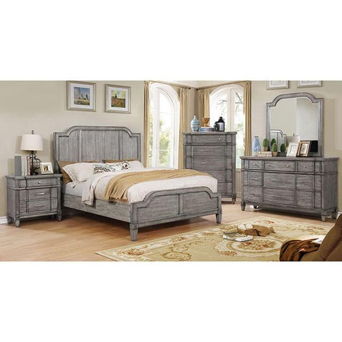 When you think of country farmhouse this lovely bedroom collection comes to mind. The soothing gray finish has a rustic, weathered look that goes beautifully with the vertical panel detailing.