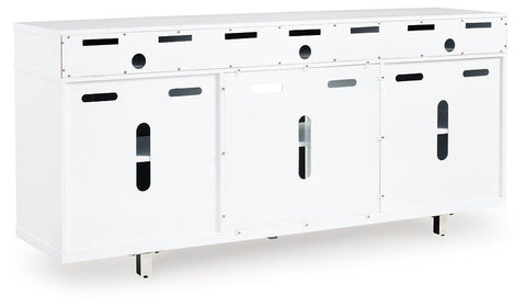 Combining a white high-gloss finish with black glass doors, this TV stand proves opposites really do attract. It's the perfect blend of modern style and functionality, with ample space for your media devices, flat-screen TV and soundbar. Adding that much more show-stopping style, the electric fireplace insert operates with or without heat and includes a six-level temperature setting, a remote control and an overheating control for added safety. It comes with faux glass crystals and natural stones, so you can customize the look of the flame bed.