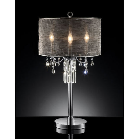 This classy table lamp features shear shades, a metal base, and three lights that provide a wonderful way to brighten up any space at night.