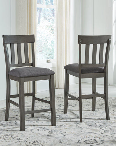 Cool and on-trend. This upholstered barstool sports a two-tone gray look for a contemporary-yet-casual feel. The cushioned foam seat in a gray textural fabric pairs seamlessly with the antiqued gray finish, while the contoured comb-back design adds a dash of geometric flair. With this chic seat, it’s easy to dine in style.