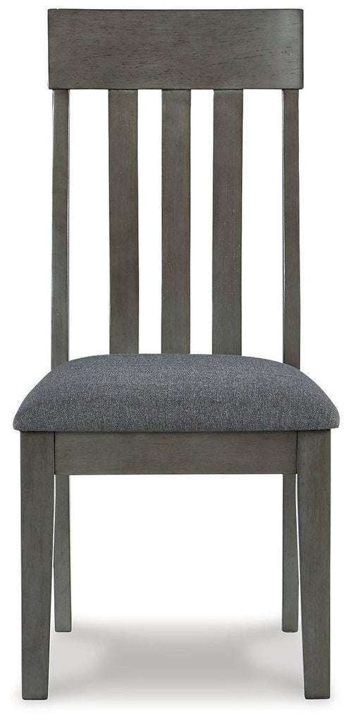 Cool and on-trend. This upholstered dining chair sports a two-tone gray look for a contemporary-yet-casual feel. The cushioned foam seat in a gray textural fabric pairs seamlessly with the antiqued gray finish, while the contoured comb-back design adds a dash of geometric flair. With this chic seat, it’s easy to dine in style.