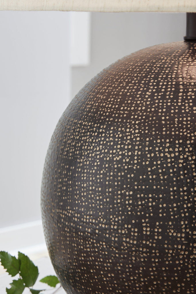 Turn on to a casually elegant sense of style with this table lamp. Its richly finished metal allures in a striking black with goldtone accents. Whether set on a side table or resting on your nightstand, it lightens the mood and brightens your home's overall ambiance and style.