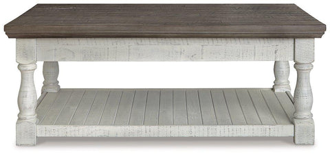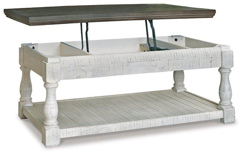 With its richly rustic finish and textural mix, this lift-top coffee table goes to town on bygone beauty. Its distressed two-tone treatment blends a weathered gray with vintage white for an utterly charming effect. The lift-top design adds function to your very comfortable space.