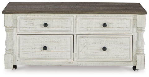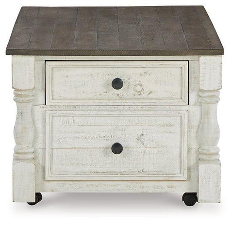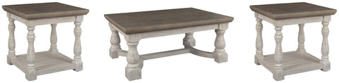 With its richly rustic finish and textural mix, this occasional table set goes to town on modern farmhouse style. Distressed two-tone treatment blends a weathered gray with vintage white for an utterly charming effect. Robust legs lend a hearty, substantial look that feels right at home.
