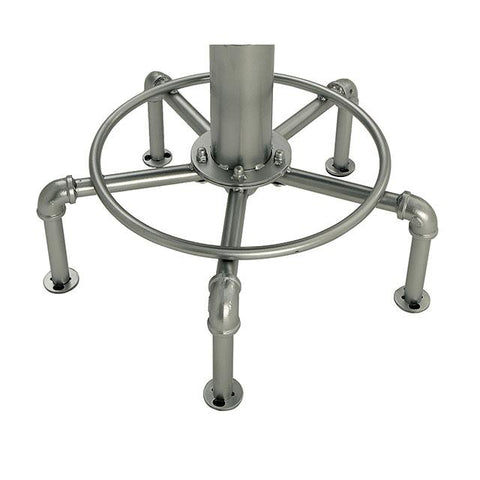 Chic meets sleek with this daring pipe inspired dining set. The clear tempered glass rests beautifully while silver powder coating adds shine to the industrious base. Two-toned chairs create a uniform look with matching legs and round leg rests. Warm veneer seats pair with the rounded backs, providing comfort for hours on end. With industrious accents and glamorous shine, this dining set provides the ultimate balance of edgy and luxurious. Product Dimensions: 30"H