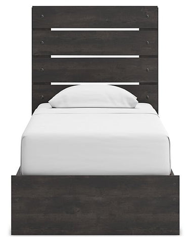 This twin panel bed puts a casually chic twist on everyday function. Its rustic charcoal finish pairs well with other neutrals and pops of color alike, giving you the flexibility to change up your aesthetic as you please. From morning to bedtime, it completes your restful retreat in exceptional form.