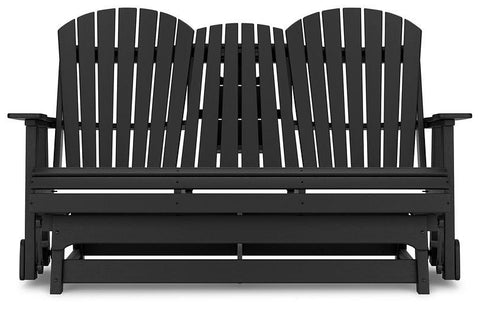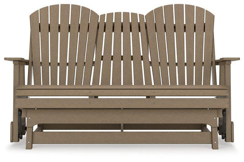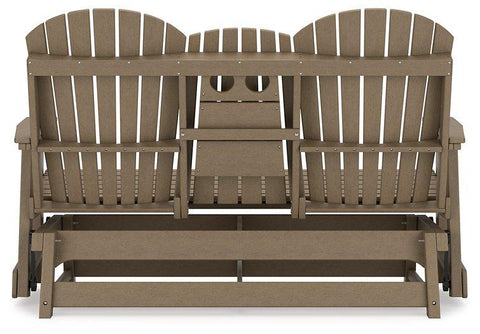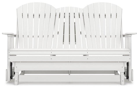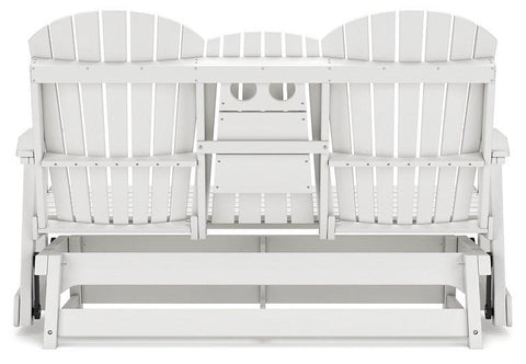 Drift away from everyday worries and into outdoor bliss with this glider loveseat. Dressed in a crisp white, the Adirondack-inspired design has a classic feel. It weathers sunny summer days and cozy winter nights with durable MEGA-TUFF® HDPE material. A drop-down console with integrated cup holders keeps refreshments and snacks within easy reach. With the console snapped into the back, this loveseat has even more room for enjoying lazy days in the shade.