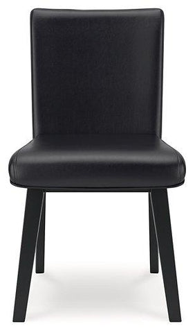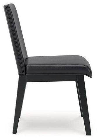 This dining chair exudes modern sophistication. Finished in a sleek black wood-tone with black faux leather upholstery for added comfort and style, it brings a beautifully balanced look to the table. A simply striking feast for the eyes—now your only worry is who to invite for dinner.