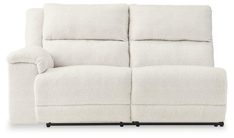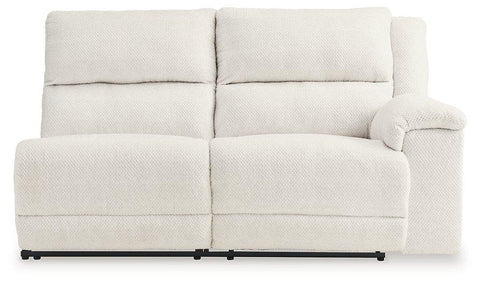 This power reclining sectional complements your contemporary cozy space. Bold block arms accentuated with form-fitting padding lend a high-style silhouette. An ample seating area invites you to sprawl during binge watches and relaxed reading hours alike. And with reclining at the press of a button, this sectional proves chic design and superb comfort go hand in hand.