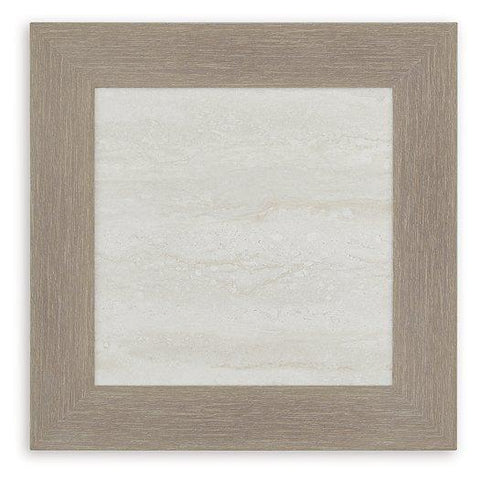 This outdoor end table is just what you need to get your outdoor party started. Though it looks remarkably like wood, its durable frame is perfectly suited for alfresco living. A striking tabletop with the look of natural stone serves up plenty of room for snacks and drinks.