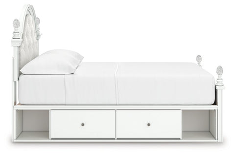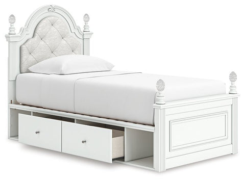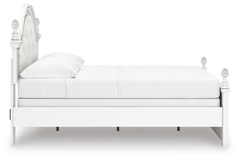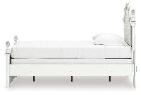 Fit for a princess. This twin upholstered panel bed’s crisp matte white finish pairs with charming ornate beading and sumptuous button-tufted upholstery—perfect for your girly girl. Decorative ball tops and multicolored LED lighting in the headboard are the crowning touches to make your little one feel like royalty.