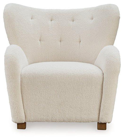 High style meets relaxation in this accent chair. Cozy faux shearling fabric keeps the look contemporary without compromising on comfort. A tufted wingback design and dramatic slope arms add high-fashion flair. It's the perfect place to curl up and enjoy your favorite book or podcast.