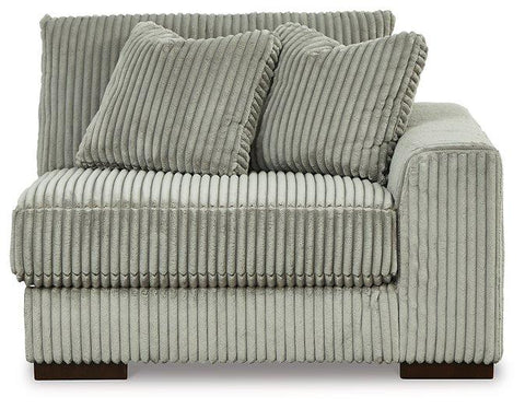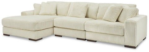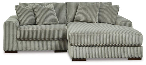 Plush and posh. Showcase your eye for on-trend texture with the statement-making cord upholstery of this sectional with chaise. Its stunningly soft fabric entices in a warm neutral hue, complementing contemporary color palettes. Sink into the cushions and plan to stay a while—this cozy living room centerpiece highlights your high-end approach to comfort and style.