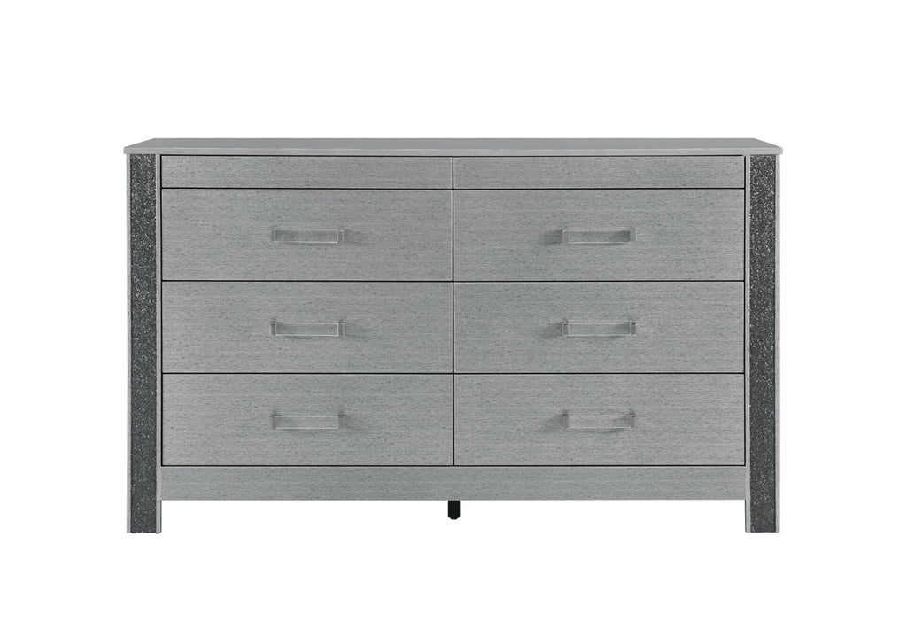 Apply for financing!The Logan Dresser is a masterpiece of design and utility. Finished in elegant silver and highlighted with crushed crystal accents, this dresser not only offers ample storage but also includes a secret jewelry drawer for your valuables. Its sophisticated design and practical features make it a must-have for any luxurious bedroom.
